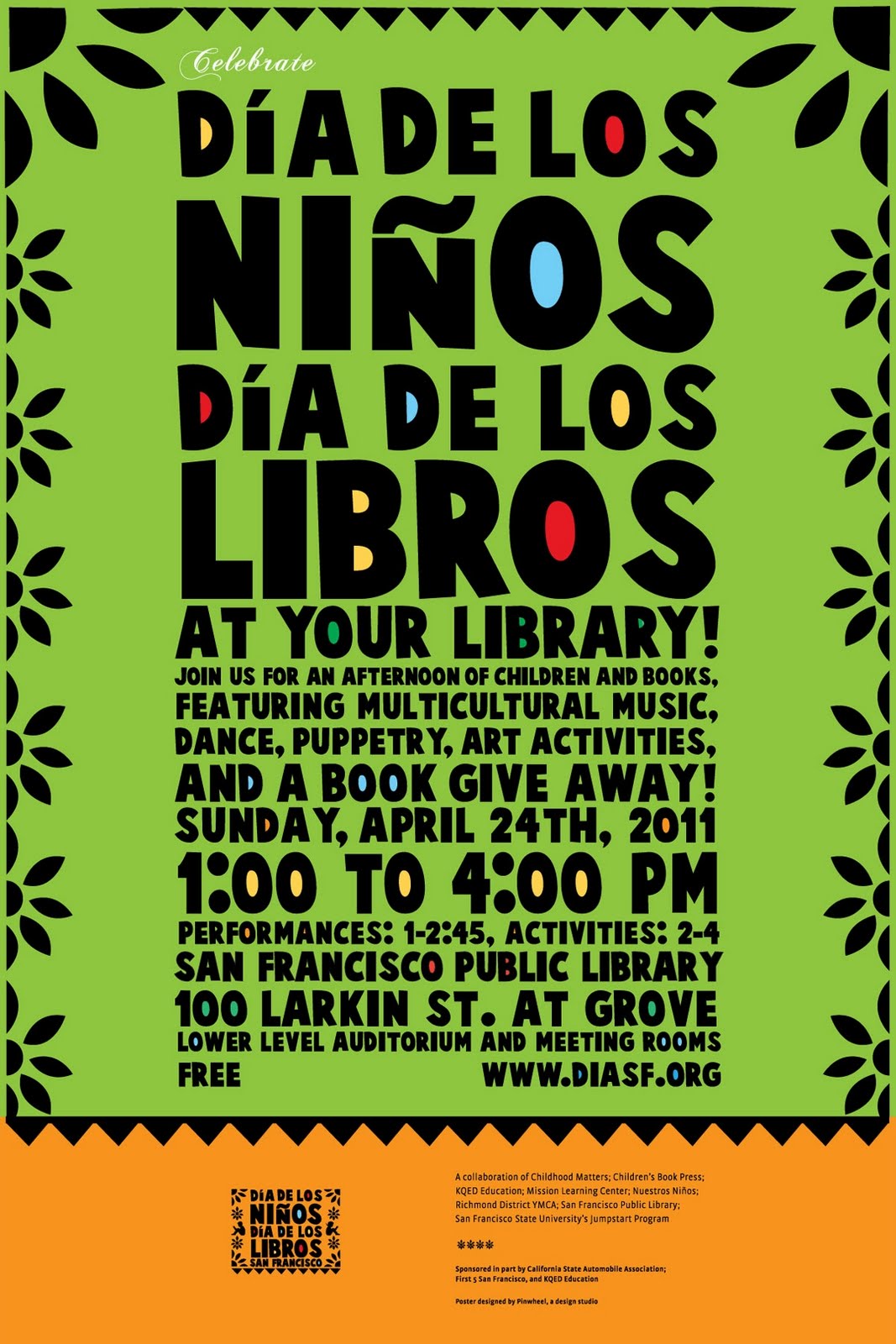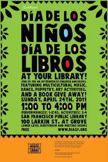 For the San Francisco Día 2011, we will be at the Main Library for our big celebration on April 24. Putting the event together this year was a challenge, as the downturn in the economy had a big effect: planning group members had to drop out, no new funding came in and there was a big increase in permit fees as we attempted to go back to our community park location, but we were determined to make Día happen!